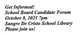 The Sangre de Cristo School District shall strive to provide a safe environment for all students and staff while offering meaningful opportunities of innovative educational programs for all students which challenge every student to:
