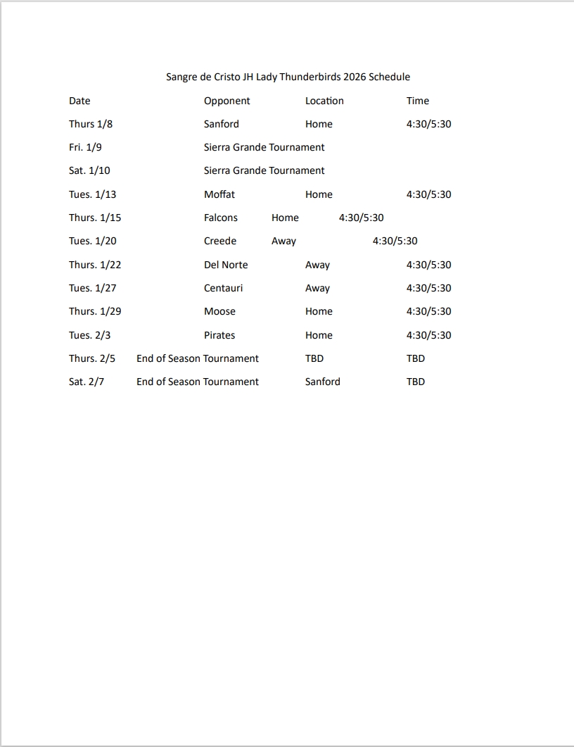 2026 MS Girls Basketball Schedule